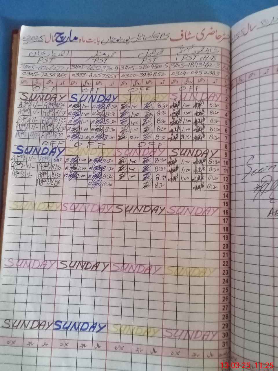 | CNIC | Full Name | Designation | R/C | Absence During Last Calender Month |