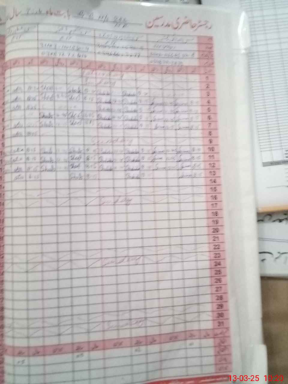| CNIC | Full Name | Designation | R/C | Absence During Last Calender Month |