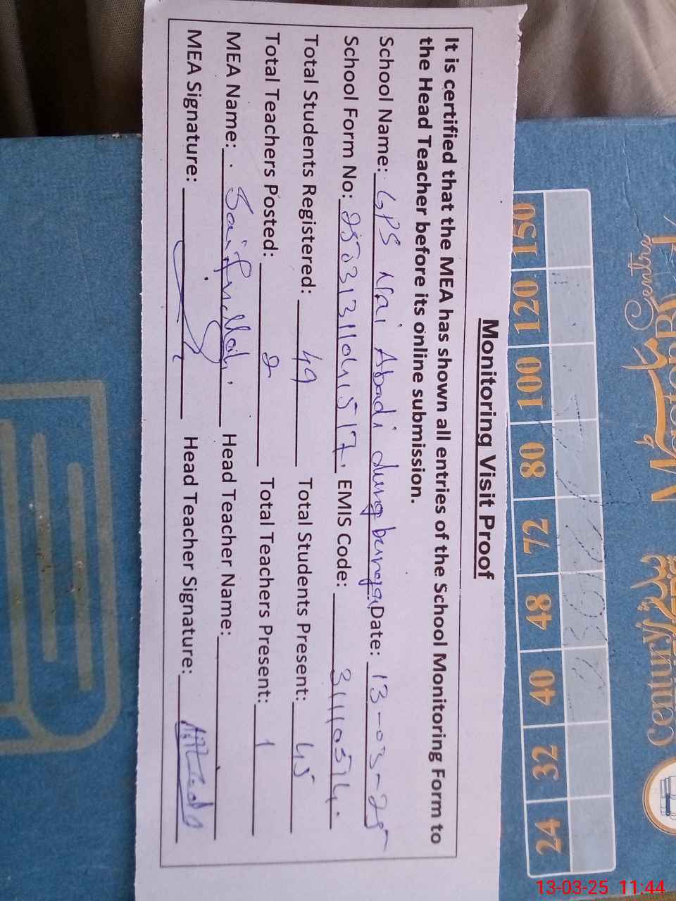 | EMIS Code: 31110514 | Name of School: GPS NAI ABADI DUNGA BUNGA | |||