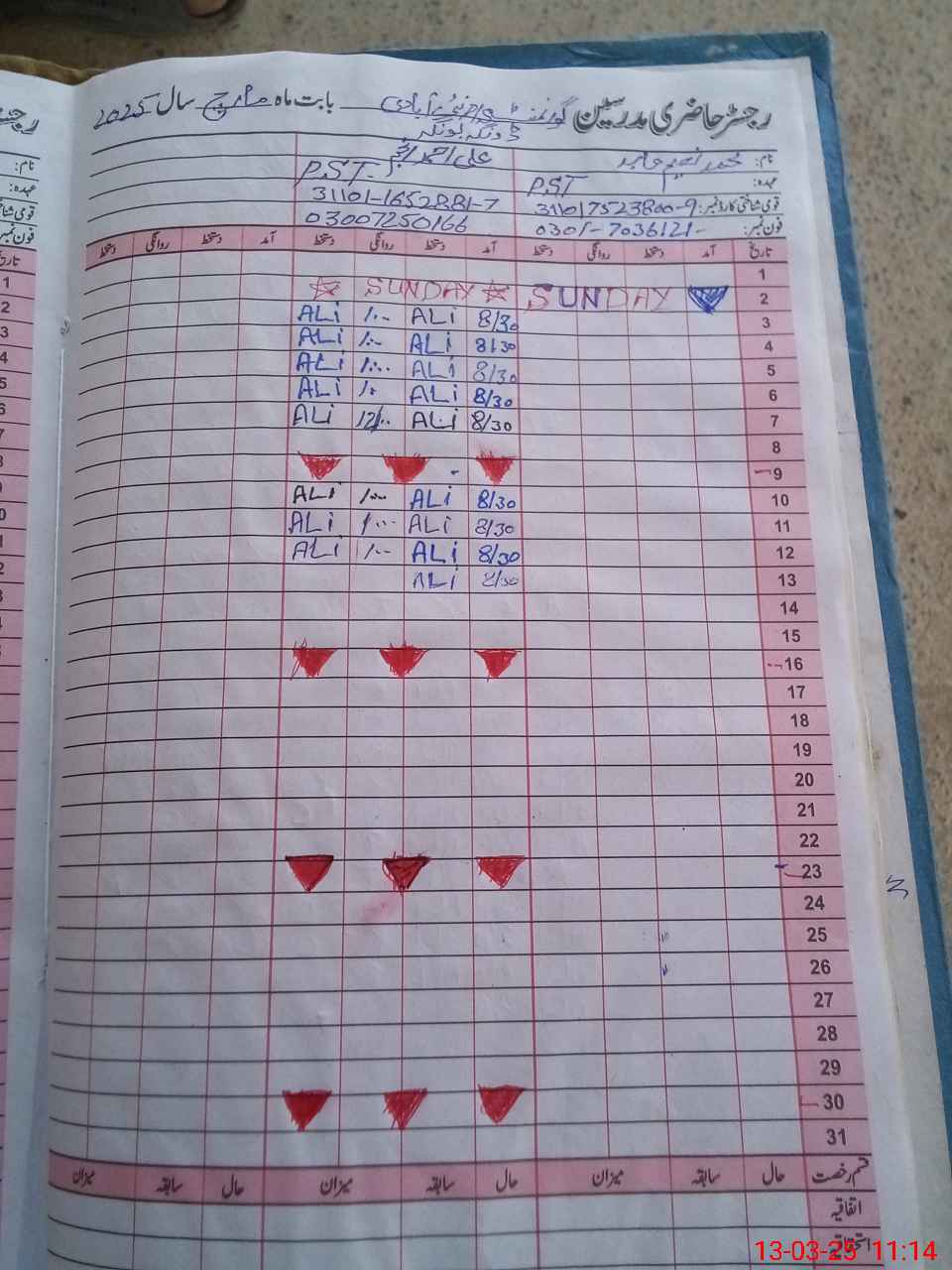| 31**** | Mu**** Na**** Ab**** | 1 | 1 | 0 | 7 | 0 | 0 | 0 | 0 | 0 | 1 | Absent (Un-Authorized) | |