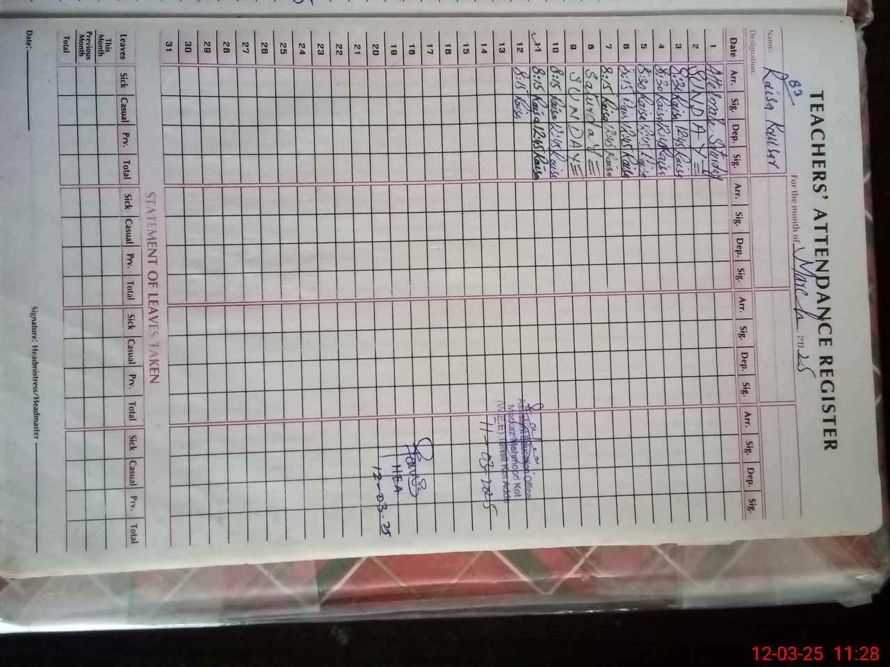 | Attendance Register | Head Teacher | MEA with School | Visit Proof |