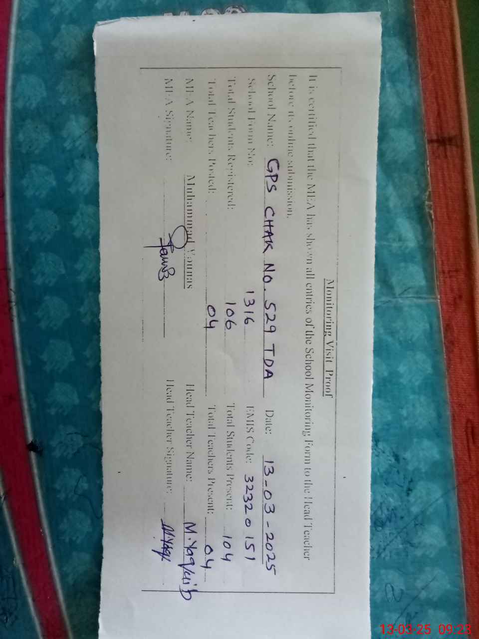 | EMIS Code: 32320151 | Name of School: GPS CHAK NO. 529/TDA | |||