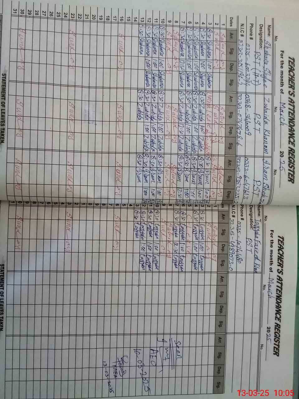 | CNIC | Full Name | Designation | R/C | Absence During Last Calender Month |