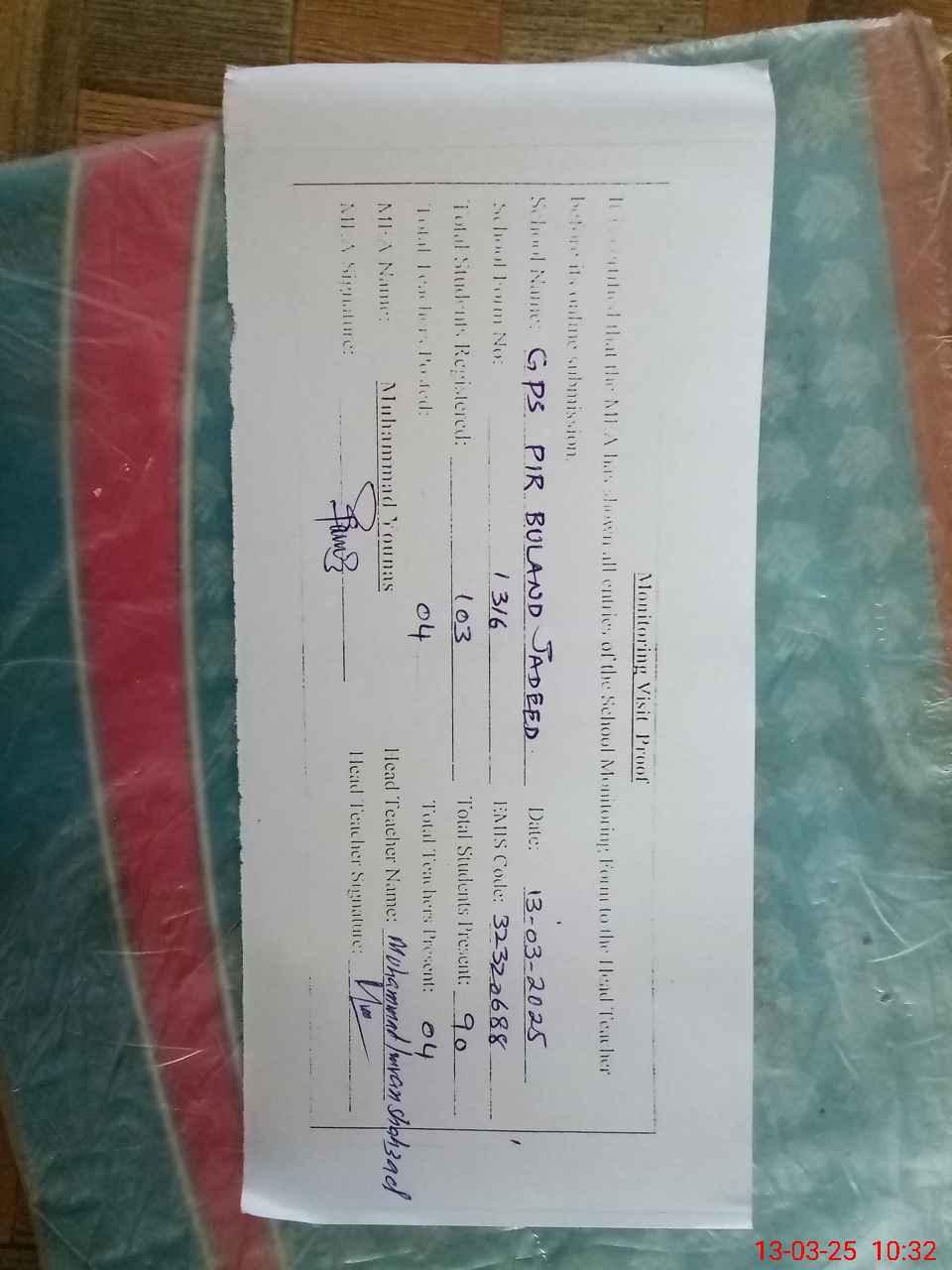 | EMIS Code: 32320688 | Name of School: GPS PIR BULAND JADEED | |||