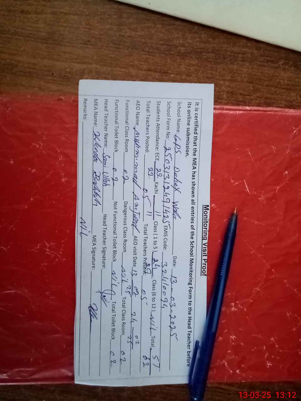 | EMIS Code: 32410094 | Name of School: GPS DAHAY WALA | |||