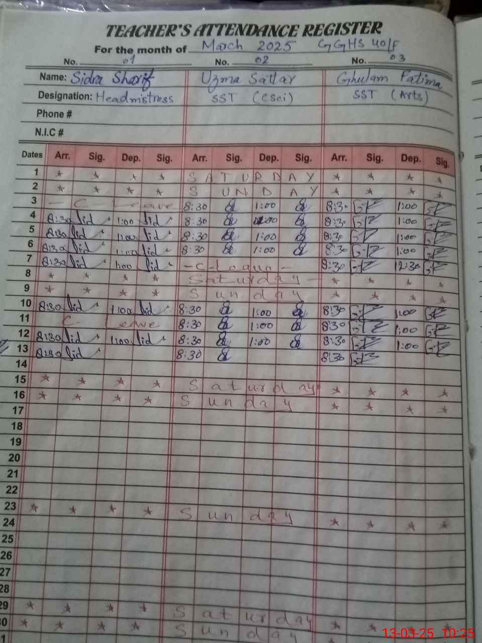 | 31**** | Gh**** Ra**** Ba**** | Regular | 1 | 0 | 0 | 0 | 0 | 0 | 0 | 0 | 1 | Exam Duty | |