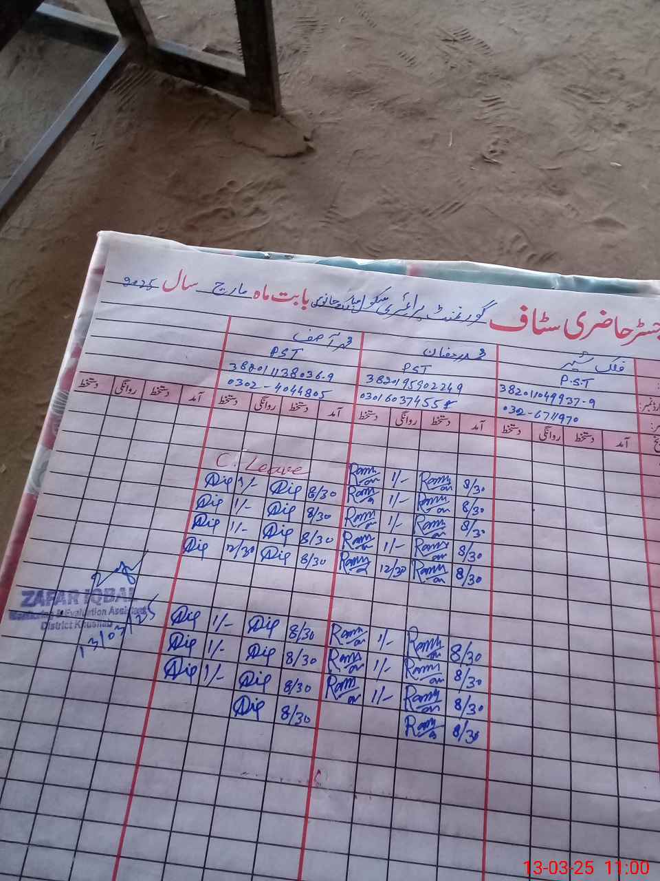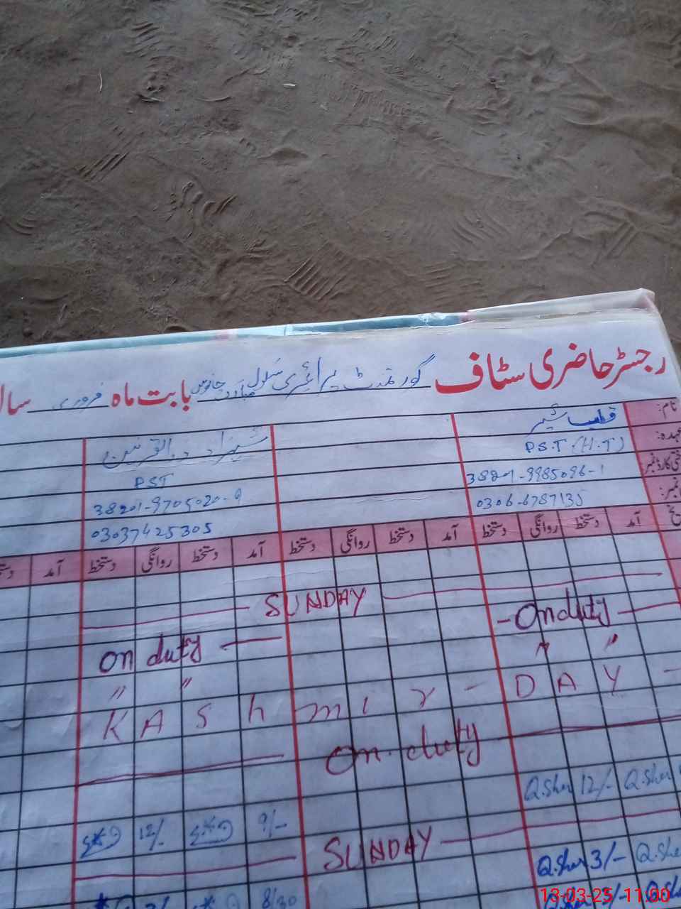 | Name: Qu**** Sh**** Designation: (School Headmaster's/Headmistress's) PST Phone/Cell Number: 03**** |