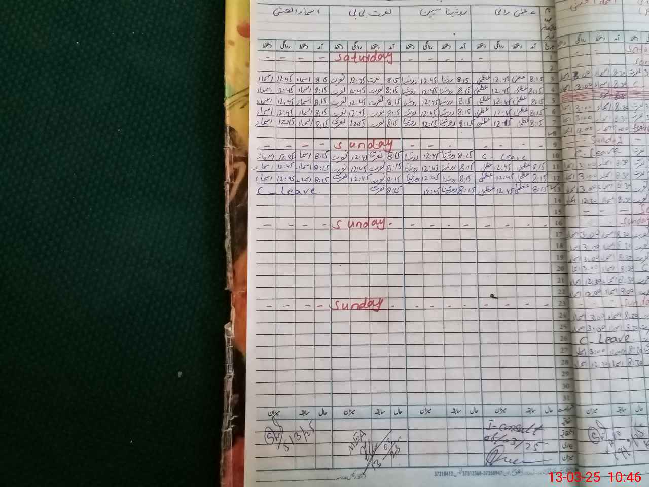 | CNIC | Full Name | Designation | R/C | Absence During Last Calender Month |