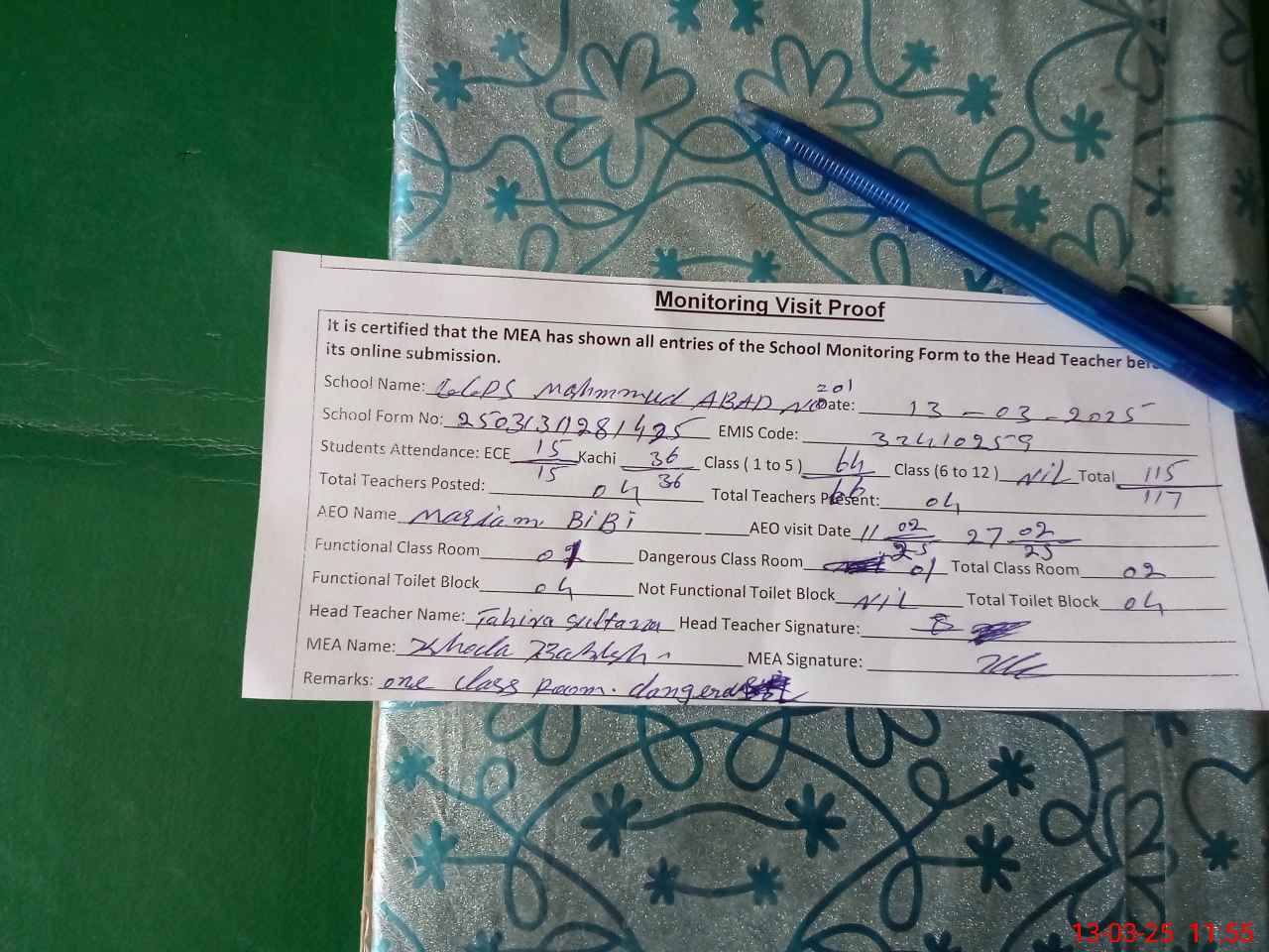 | EMIS Code: 32410259 | Name of School: GGPS MEHMOOD ABAD NO.1 | |||