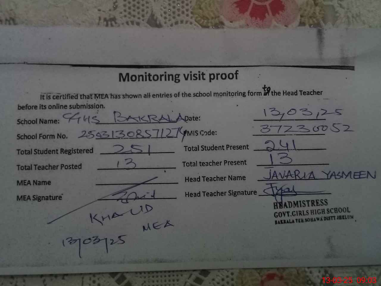 | EMIS Code: 37230052 | Name of School: GGHS BAKRALA | |||