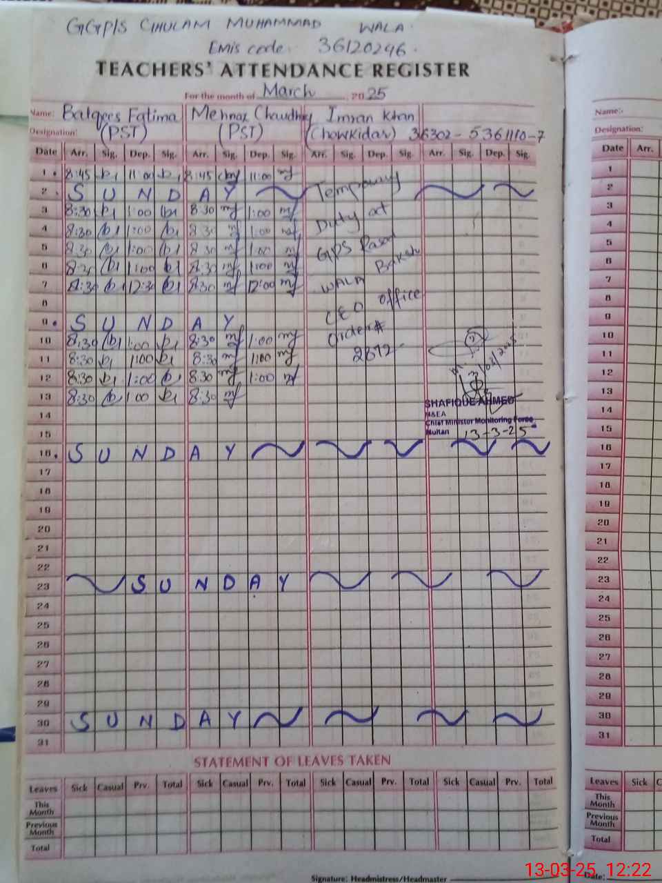 | 36**** | Im**** Kh**** | CHOWKIDAR | Regular | 0 | 0 | 0 | 0 | 0 | 0 | 0 | 0 | 0 | Other |