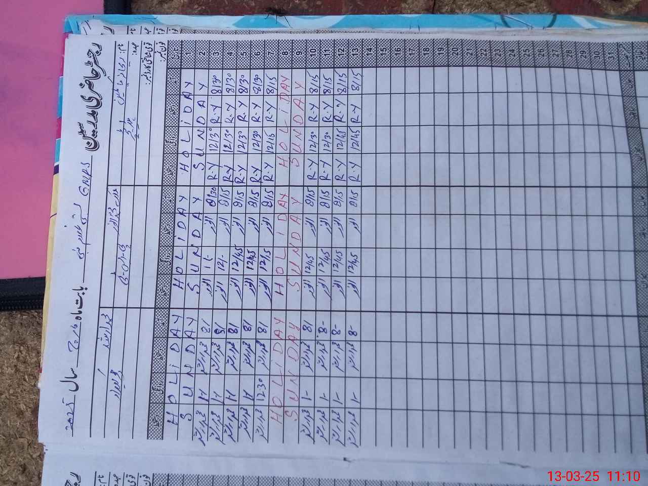| CNIC | Full Name | Designation | R/C | Absence During Last Calender Month |