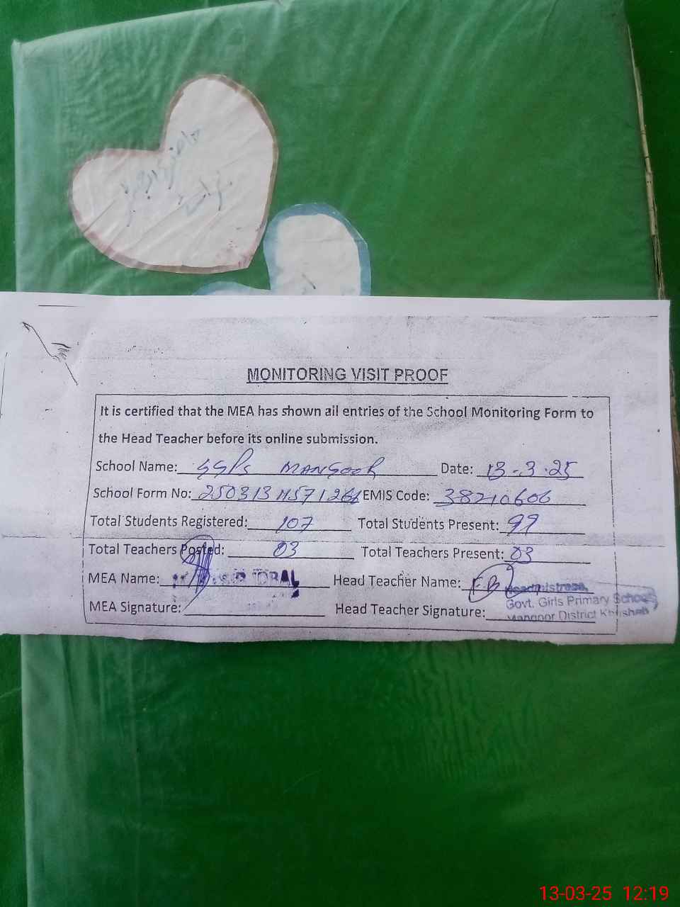 | EMIS Code: 38210606 | Name of School: GGPS MANGOOR | |||