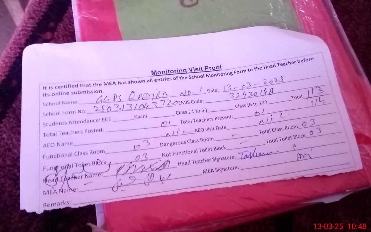 | EMIS Code: 32430148 | Name of School: GGPS QADRA NO. 1 | |||