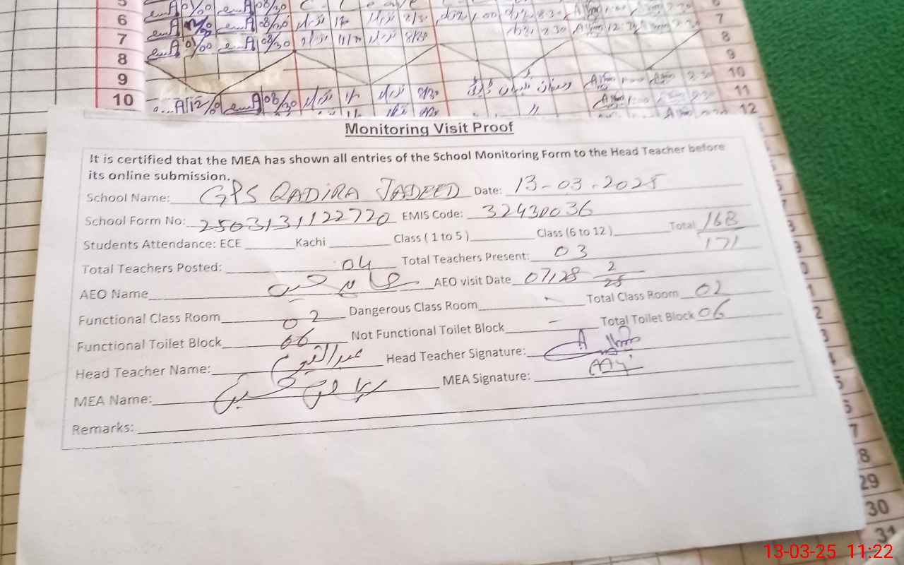 | EMIS Code: 32430036 | Name of School: GPS QADIRA JADEED | |||