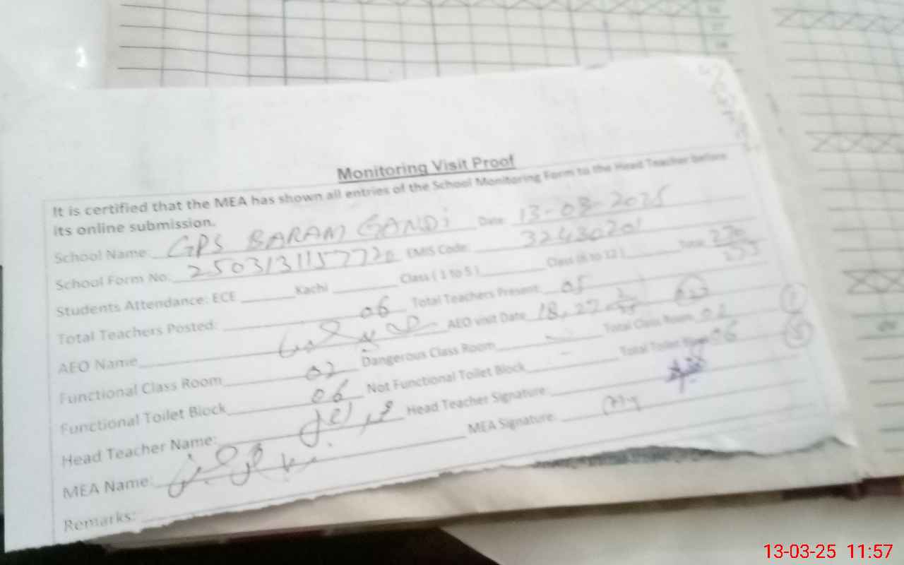 | EMIS Code: 32430201 | Name of School: GPS BARAM GANDI | |||