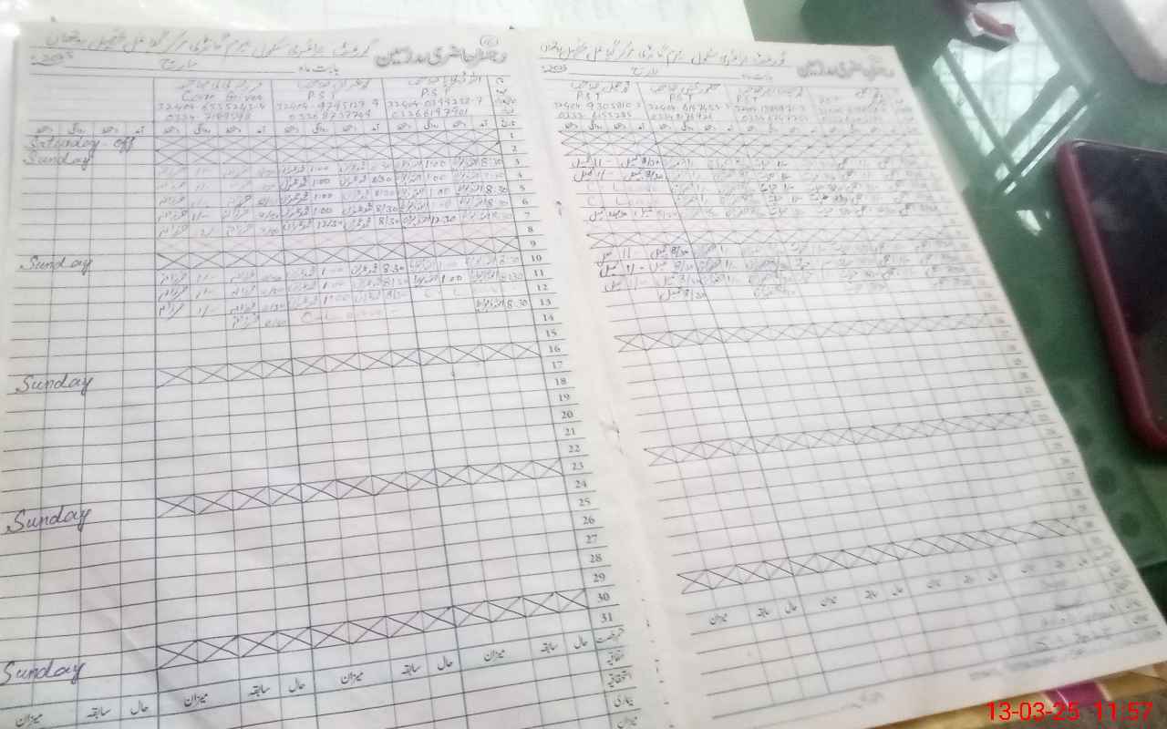 | CNIC | Full Name | Designation | R/C | Absence During Last Calender Month |