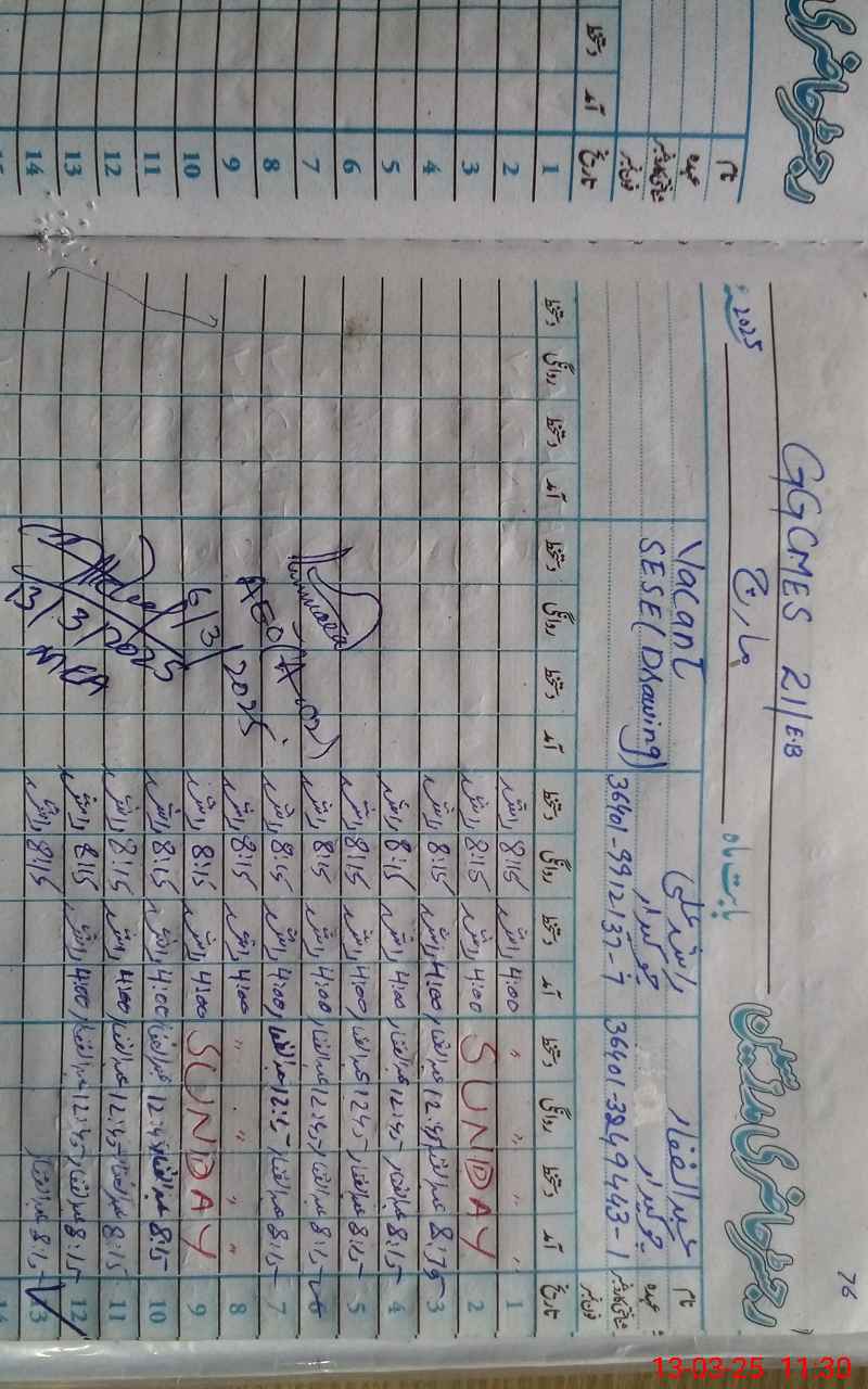 | Name: FA**** SH**** Designation: (School Headmaster's/Headmistress's) SST (GENERAL) Phone/Cell Number: 03**** |