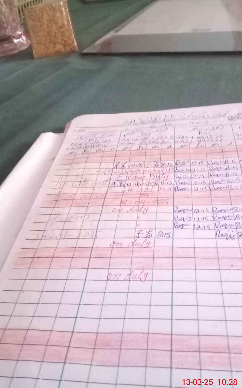 | 34**** | Fa**** Sh**** | PST | Regular | 0 | 0 | 0 | 0 | 0 | 0 | 0 | 0 | 0 | Exam Duty |