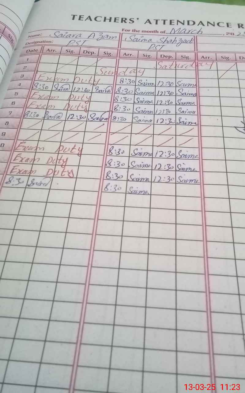 | Name: SA**** AZ**** Designation: (School Headmaster's/Headmistress's) PST Phone/Cell Number: 03**** |