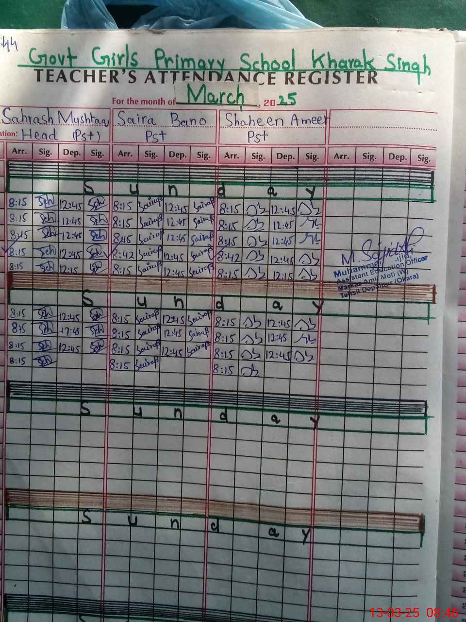 | Name: Sh**** Mu**** Designation: (School Headmaster's/Headmistress's) PST Phone/Cell Number: 03**** |