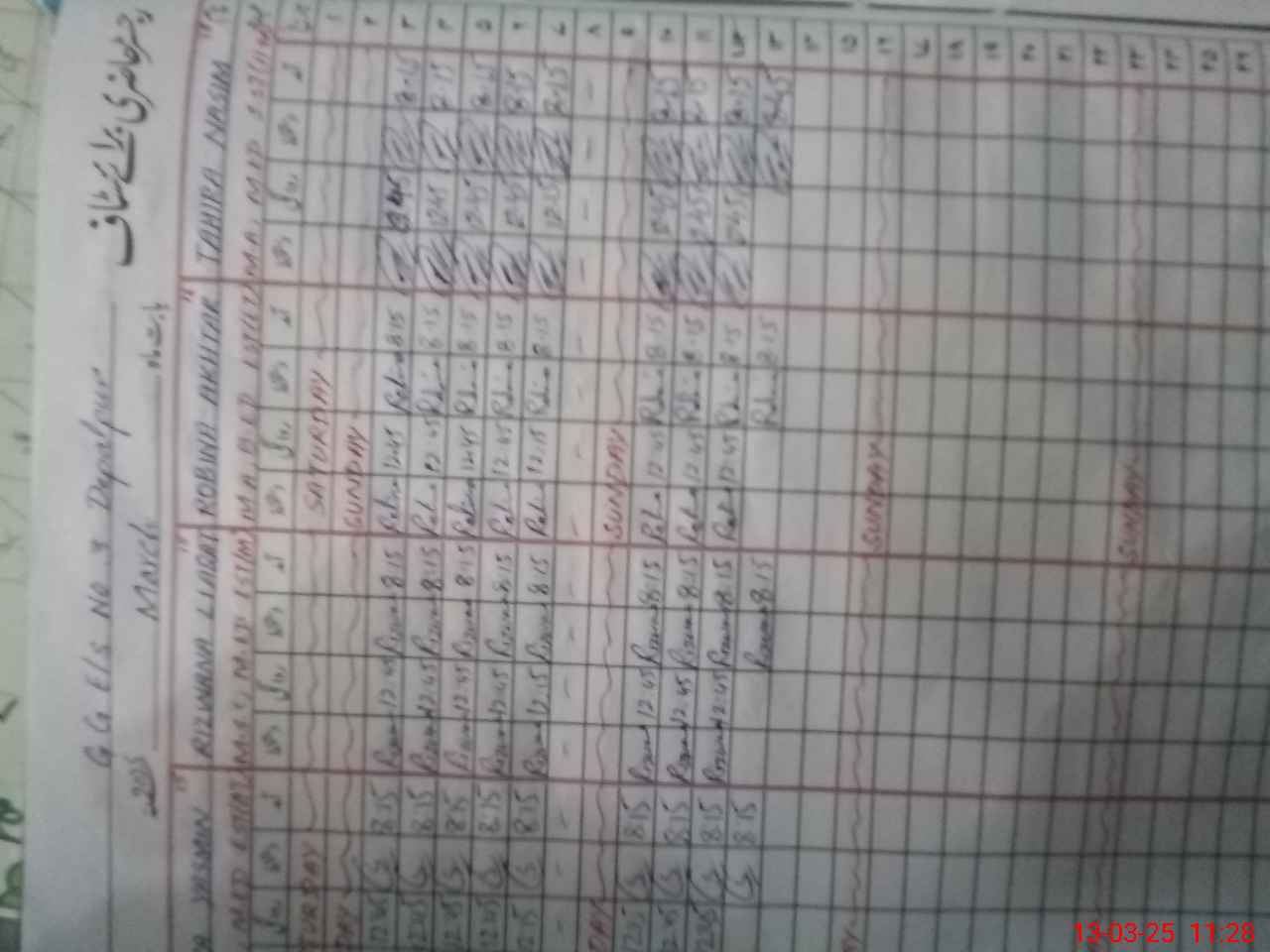 | CNIC | Full Name | Designation | R/C | Absence During Last Calender Month |