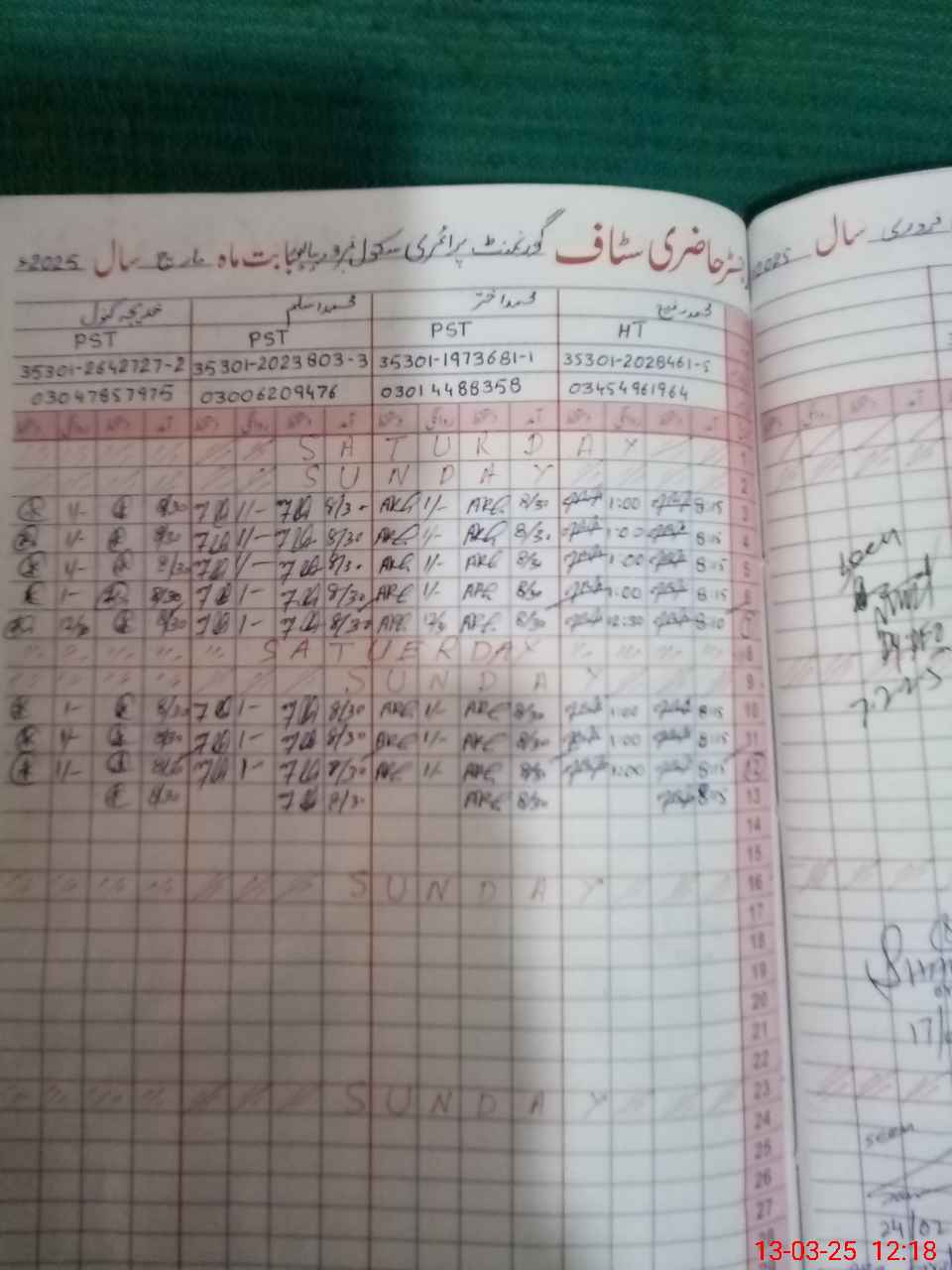 | Name: MU**** RA**** Designation: (School Headmaster's/Headmistress's) PST Phone/Cell Number: 03**** |