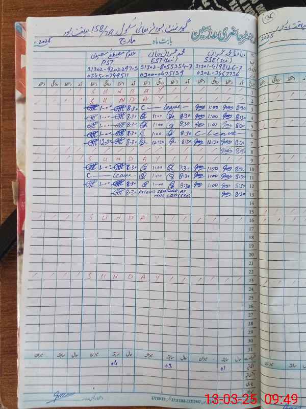| CNIC | Full Name | Designation | R/C | Absence During Last Calender Month |