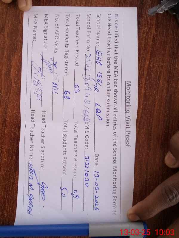 | EMIS Code: 31321030 | Name of School: GHS 158/7-R | |||
