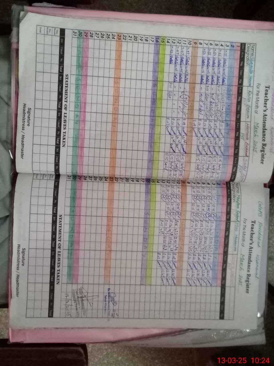 | Leave | Duty | Absent | Maternity | Medical | Ex- Pak |