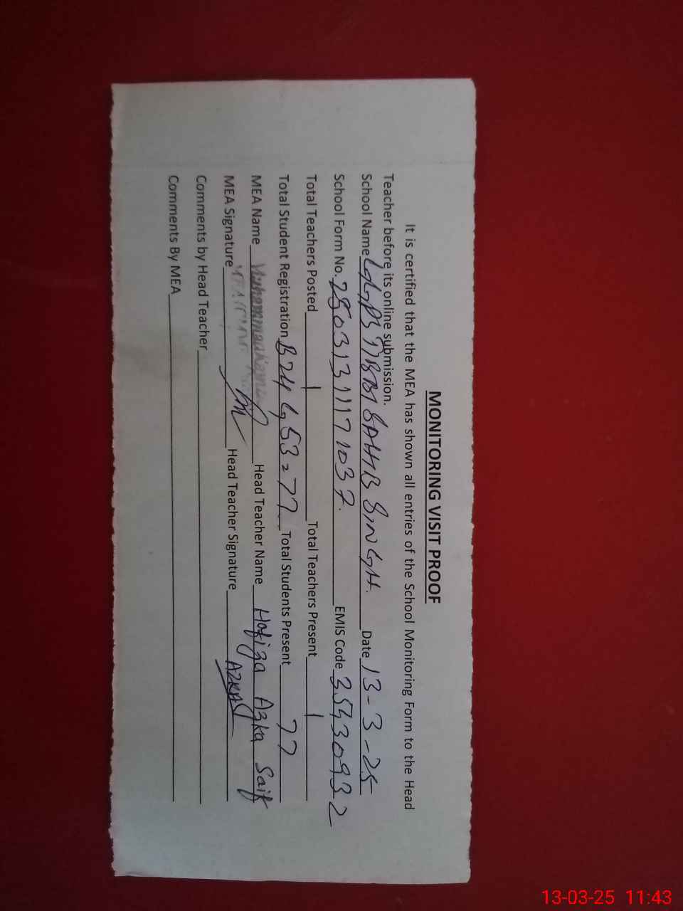 | Certified that this School was Inspected by the Undersigned MEA/DMO Today and the Information Stated Above is as Per Record. | |||||