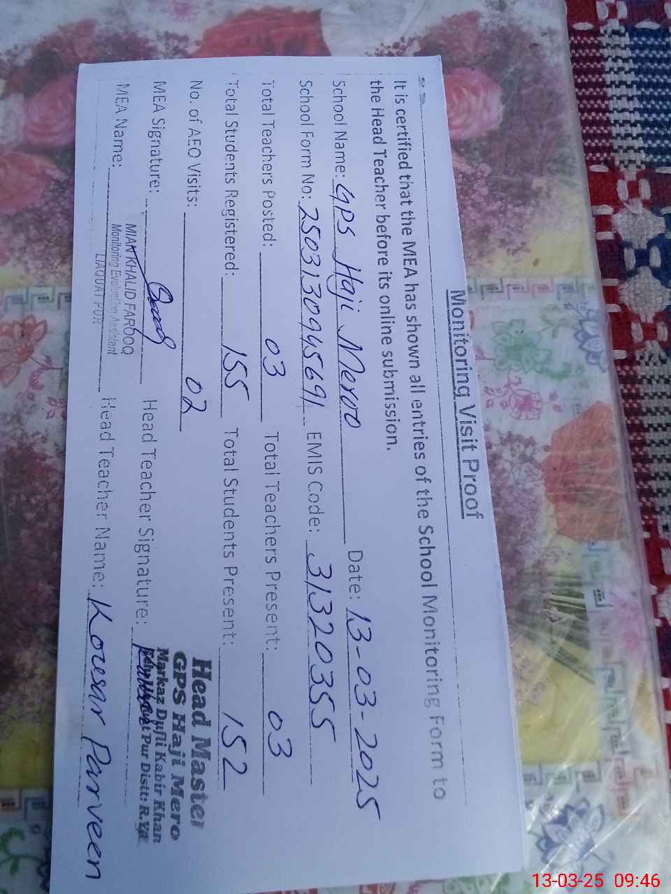 | EMIS Code: 31320355 | Name of School: GPS HAJI MEROO | |||