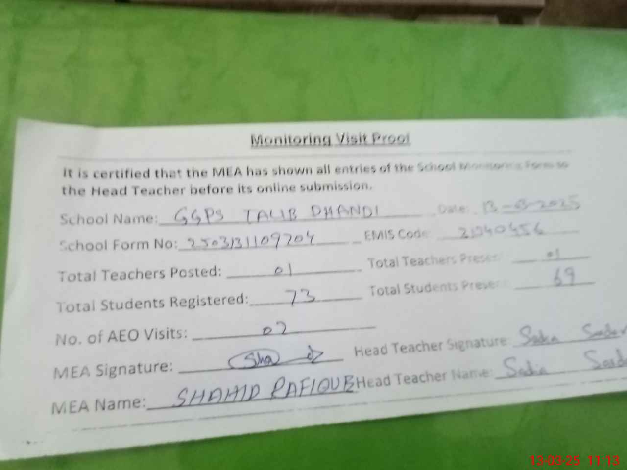 | EMIS Code: 31340456 | Name of School: GGPS TALIB DHANDI | |||