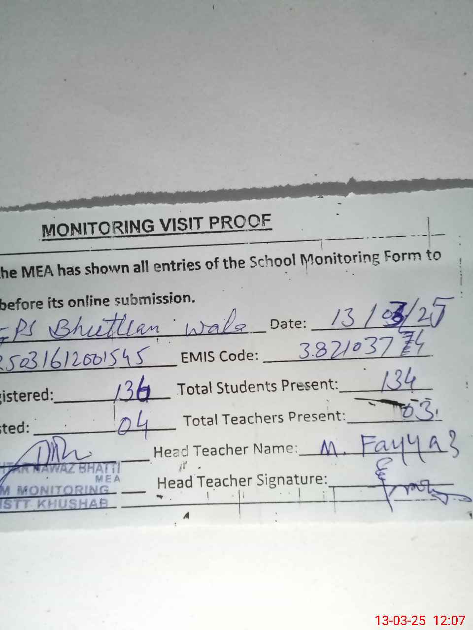 | EMIS Code: 38210374 | Name of School: GPS BHUTTIAN WALA | |||