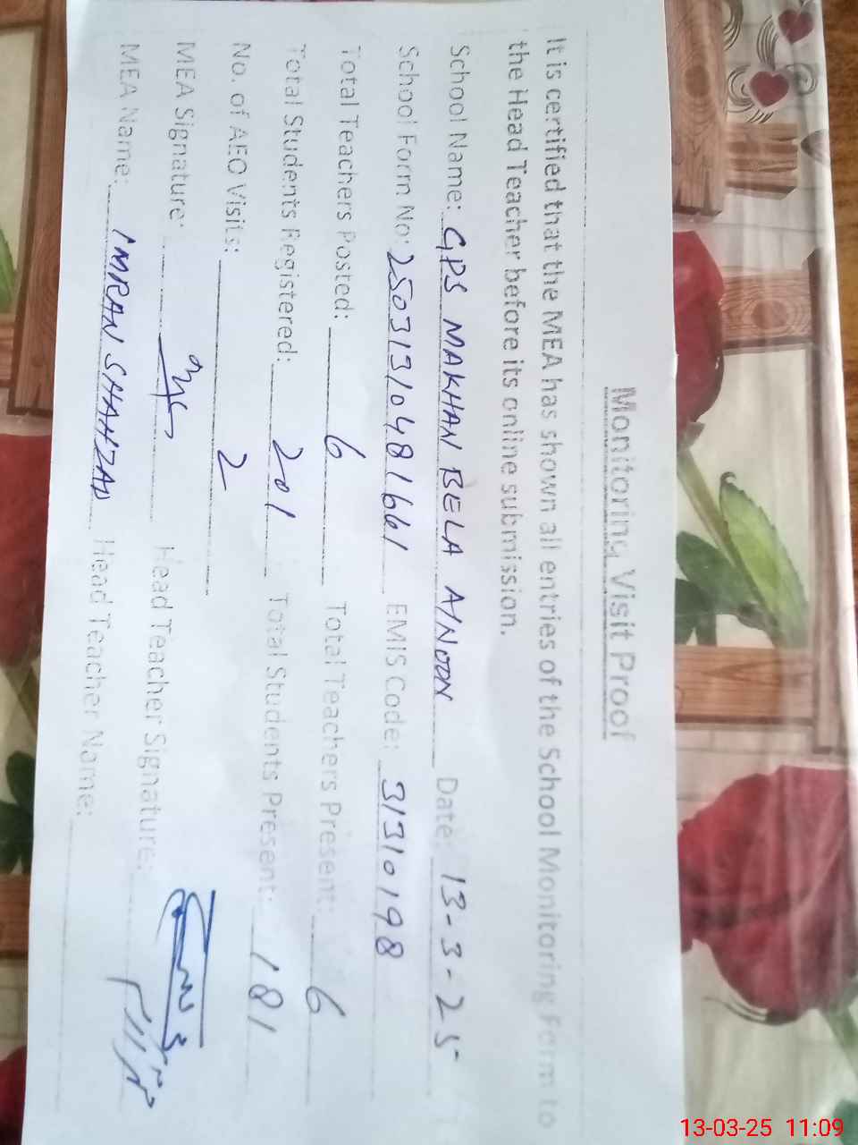 | EMIS Code: 31310198 | Name of School: GPS MAKHAN BELA (After Noon) | |||