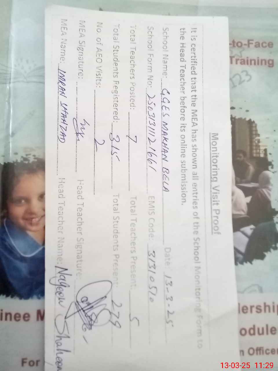 | EMIS Code: 31310510 | Name of School: GGES MAKHAN BELA | |||