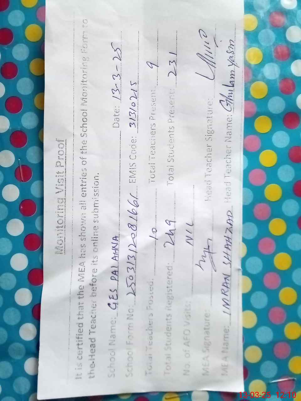| Certified that this School was Inspected by the Undersigned MEA/DMO Today and the Information Stated Above is as Per Record. | |||||