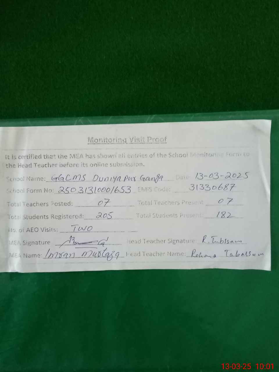 | EMIS Code: 31330687 | Name of School: GGCMS DUNIYA PUR GANGA BASTI YAR MUHAMMAD | |||