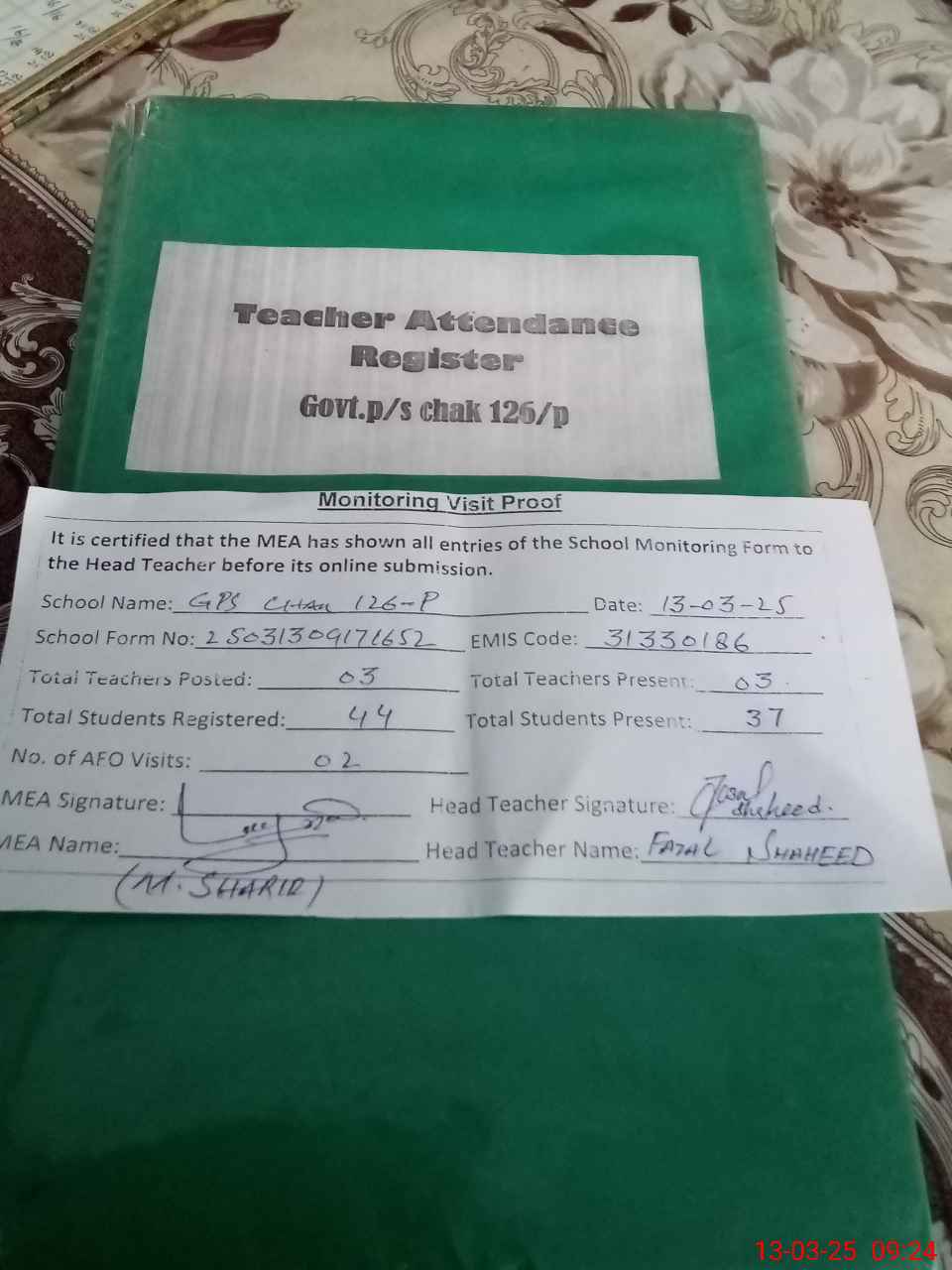 | EMIS Code: 31330186 | Name of School: GPS CHAK NO. 126/P | |||
