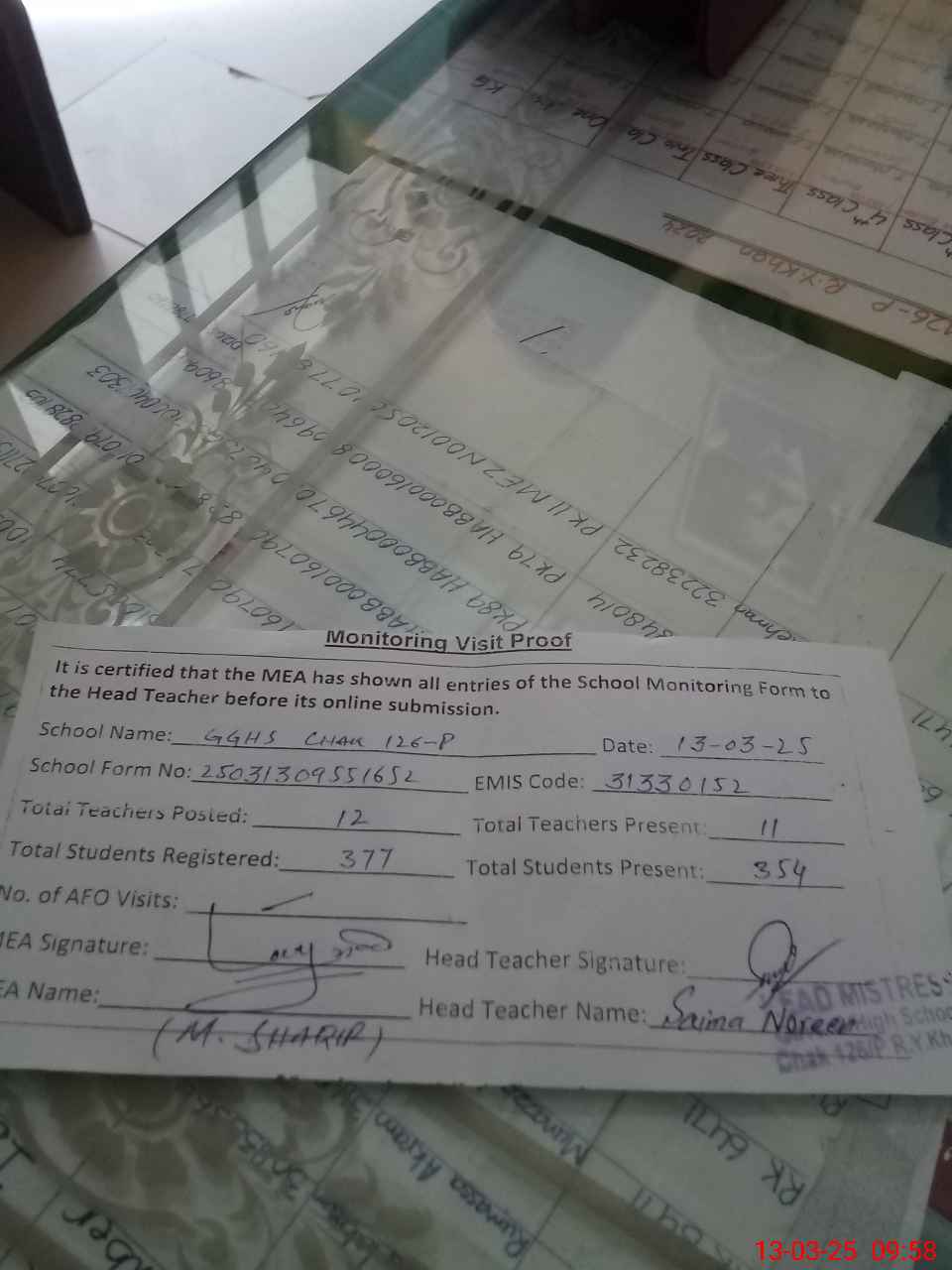 | EMIS Code: 31330152 | Name of School: GGHS CHAK NO. 126/P | |||