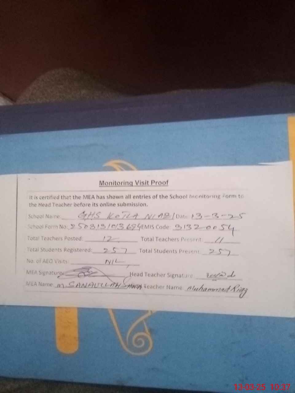 | EMIS Code: 31320054 | Name of School: GHS KOTLA NIAZI | |||