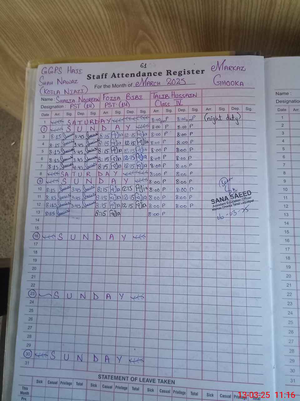 | Name: Sh**** No**** Designation: (School Headmaster's/Headmistress's) PST Phone/Cell Number: 03**** |
