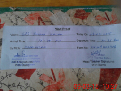 | Attendance Register | Head Teacher | MEA with School | Visit Proof |