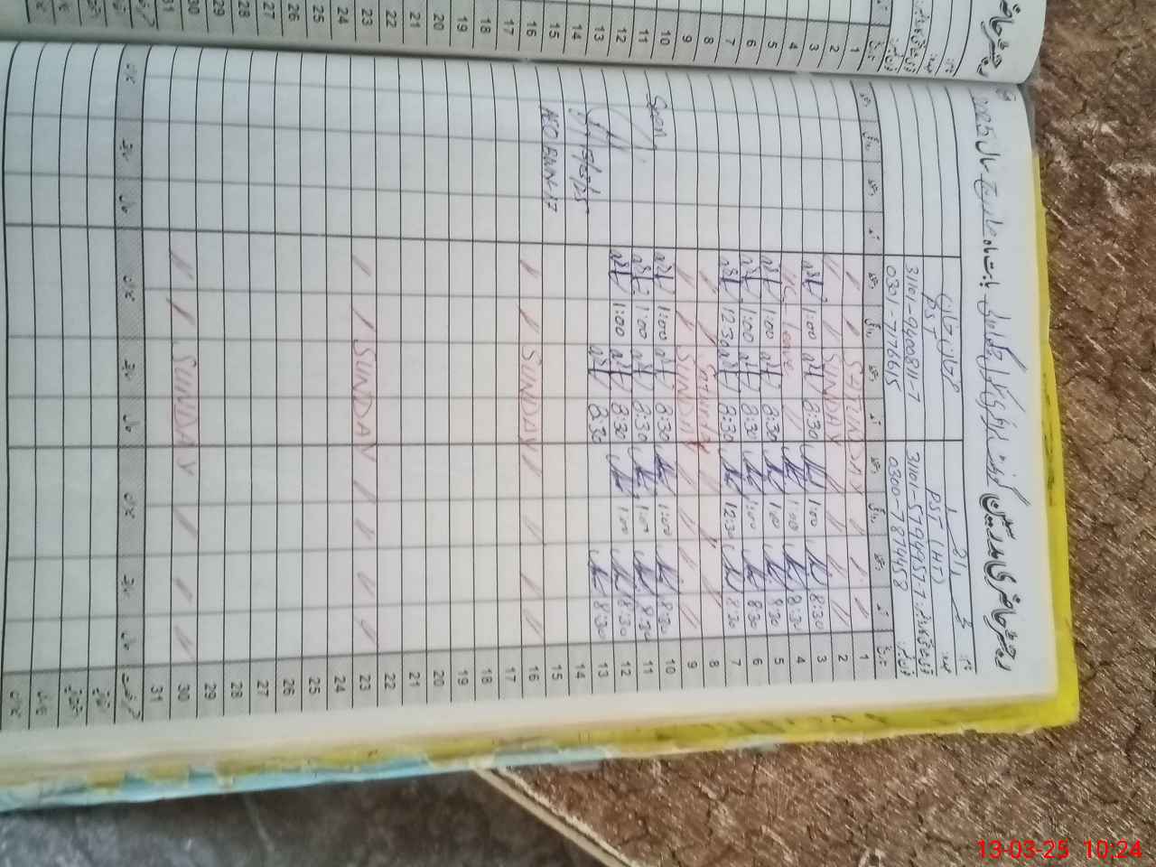 | CNIC | Full Name | Designation | R/C | Absence During Last Calender Month |