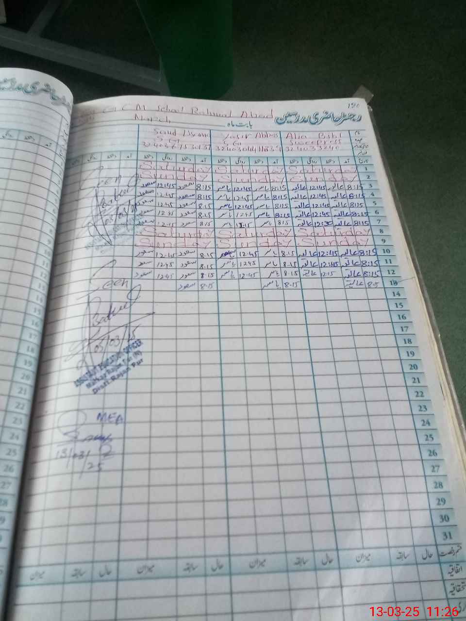 | Attendance Register | Head Teacher | MEA with School | Visit Proof |