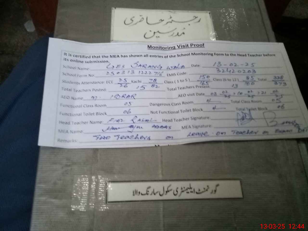 | EMIS Code: 32420203 | Name of School: GES SARANG WALA | |||