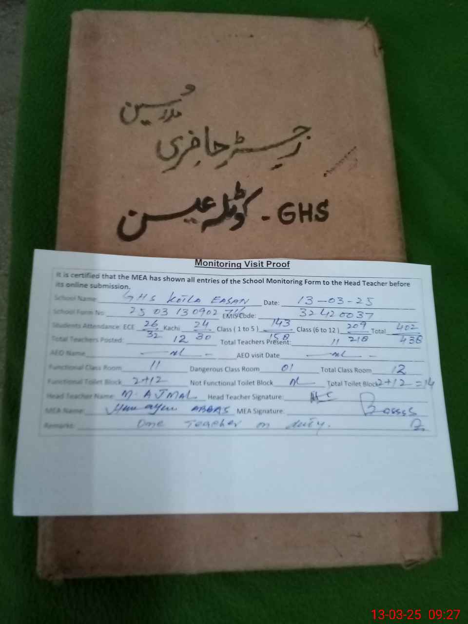 | EMIS Code: 32420037 | Name of School: GHS KOTLA EASAN | |||