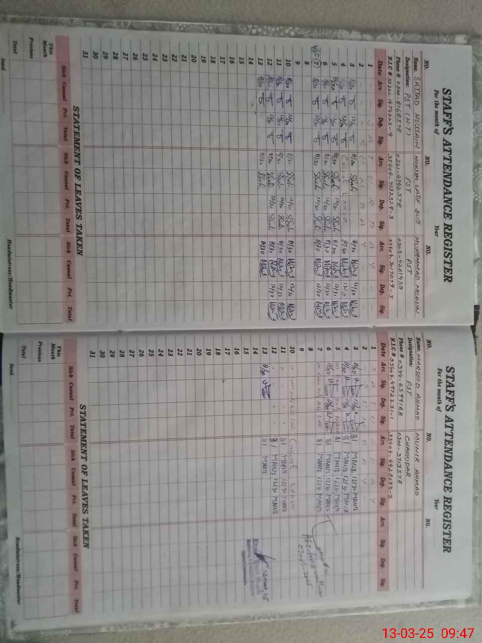 | Name: Sa**** Hu**** Designation: (School Headmaster's/Headmistress's) PST Phone/Cell Number: 03**** |