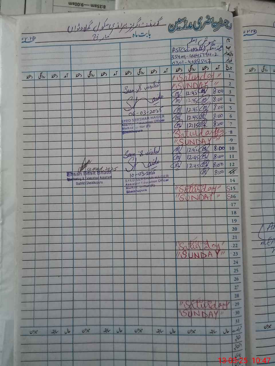 | Name: Ma**** As**** Designation: (School Headmaster's/Headmistress's) PST Phone/Cell Number: 03**** |