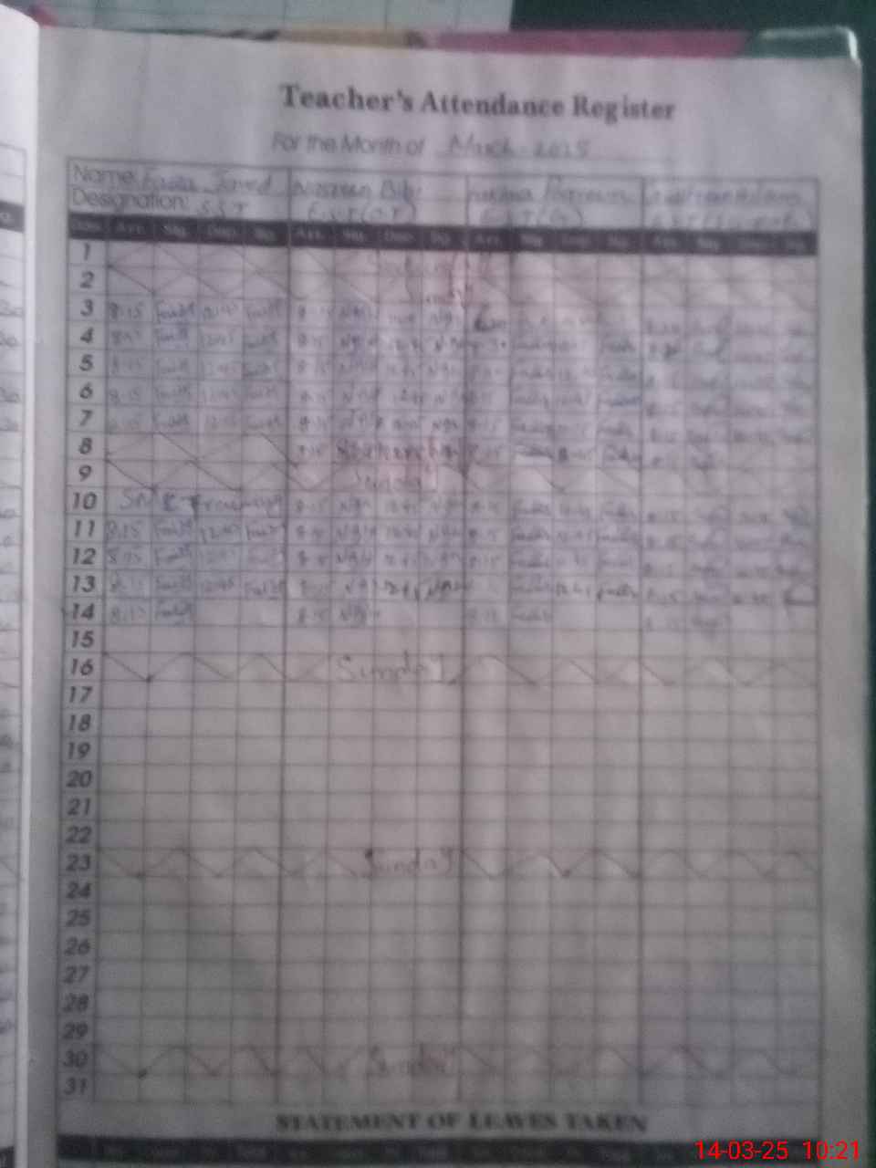 | 38**** | An**** Fa**** | PST | Regular | 0 | 0 | 0 | 0 | 0 | 0 | 0 | 0 | 0 | Exam Duty |